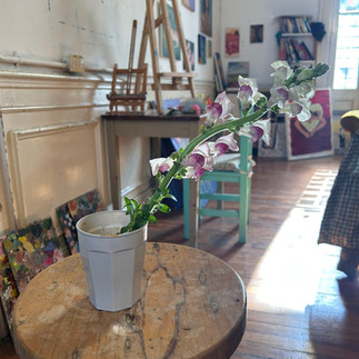 Cada caminata hasta el taller de pintura es un rito en sí mismo: cruzar Almagro, ese barrio que me recibió cuando llegué de Santa Fe, donde nació Gringa y donde fuí tantas historias. Paso por las florerías de la calle Sarmiento, me lleno de colores y perfumes, de esa abundancia exagerada de los ramos que desbordan las veredas húmedas, con agua que chorrea de los tachos que las sostienen. Llego al taller empapada de ese universo, lista para agarrar el pincel.