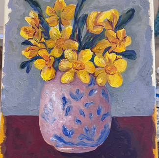 Siempre quise pintar flores, pero no me lo permitía por la “simpleza” del concepto. Hasta que un día, bastidor en mano, compré un ramo, lo puse en un vaso y simplemente copié. Copié lo bello.